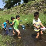真夏日和だった今日の森のようちえんは、やっぱり川遊び!