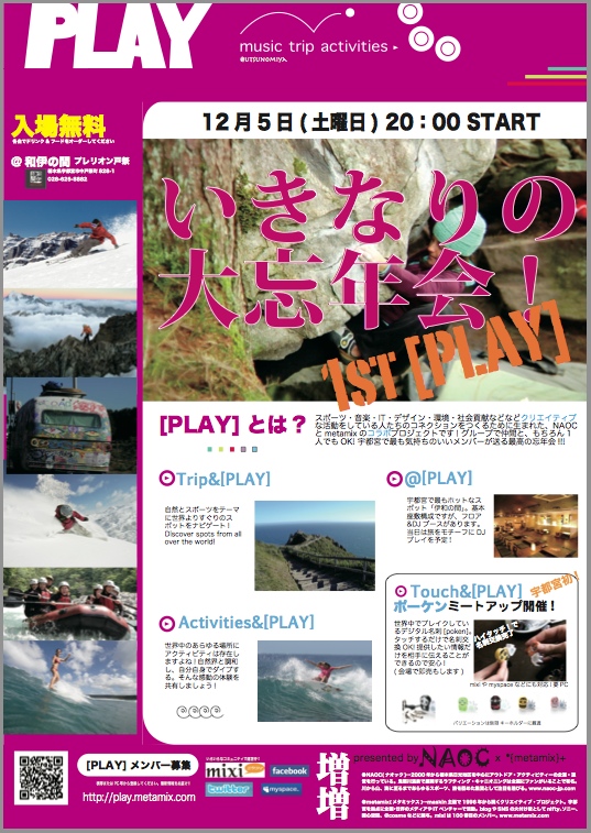 project[play] : スポーツ・音楽・IT・デザイン・環境・社会貢献などなどクリエイティブな活動をしている人たちのコネクションをつくるために生まれた、NAOCとmetramixのコラボプロジェクト。