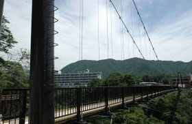 7月19日(日)、鬼怒川温泉の新名所「鬼怒楯岩大吊橋」が完成します。鬼怒川温泉街と名勝楯岩を結ぶ長さ140mの歩道専用の吊橋です。橋上からは、40m下の大岩を縫って流れる鬼怒川の急流と緑の山々を眺めることができます。
