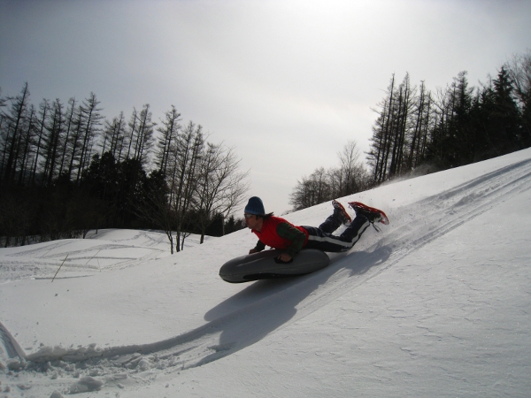 このツアーの魅力は2つ、「エアボード」もう一つは「スノーシュー」。