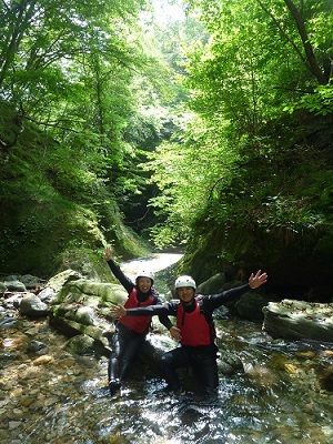 秋晴れの中のキャニオニングは心も身体も癒されます。