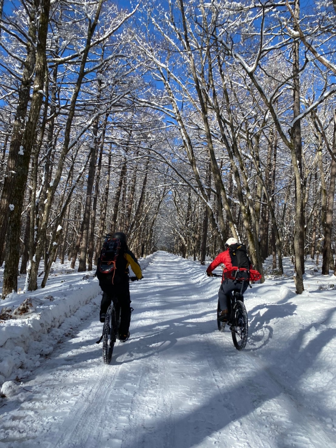 圧雪された起伏の緩やかなコースを走るので、雪の上を自転車で走行したことのない方や、登り坂、下り坂が不安なサイクリング、マウンテンバイク初心者の方でも安心してお楽しみいただけます!