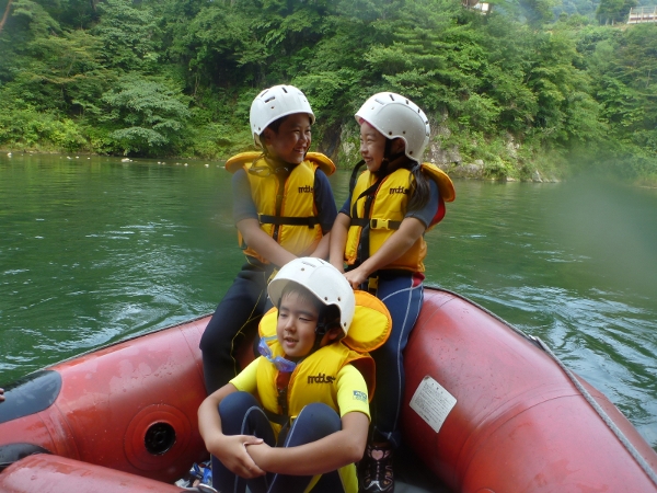 ラフティングも後半になってくると、みんなで一生懸命ボートを漕いで速さを競ったり、ボート同士が近づくと水を掛け合ったりと楽しい時間があっという間でした!